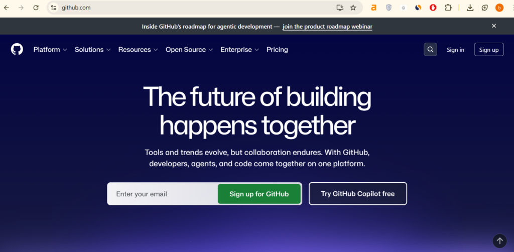 GitHub is a website and cloud platform built on top of Git. It lets you store your code online, share it with others, and collaborate on projects — even with developers on the other side of the world.
